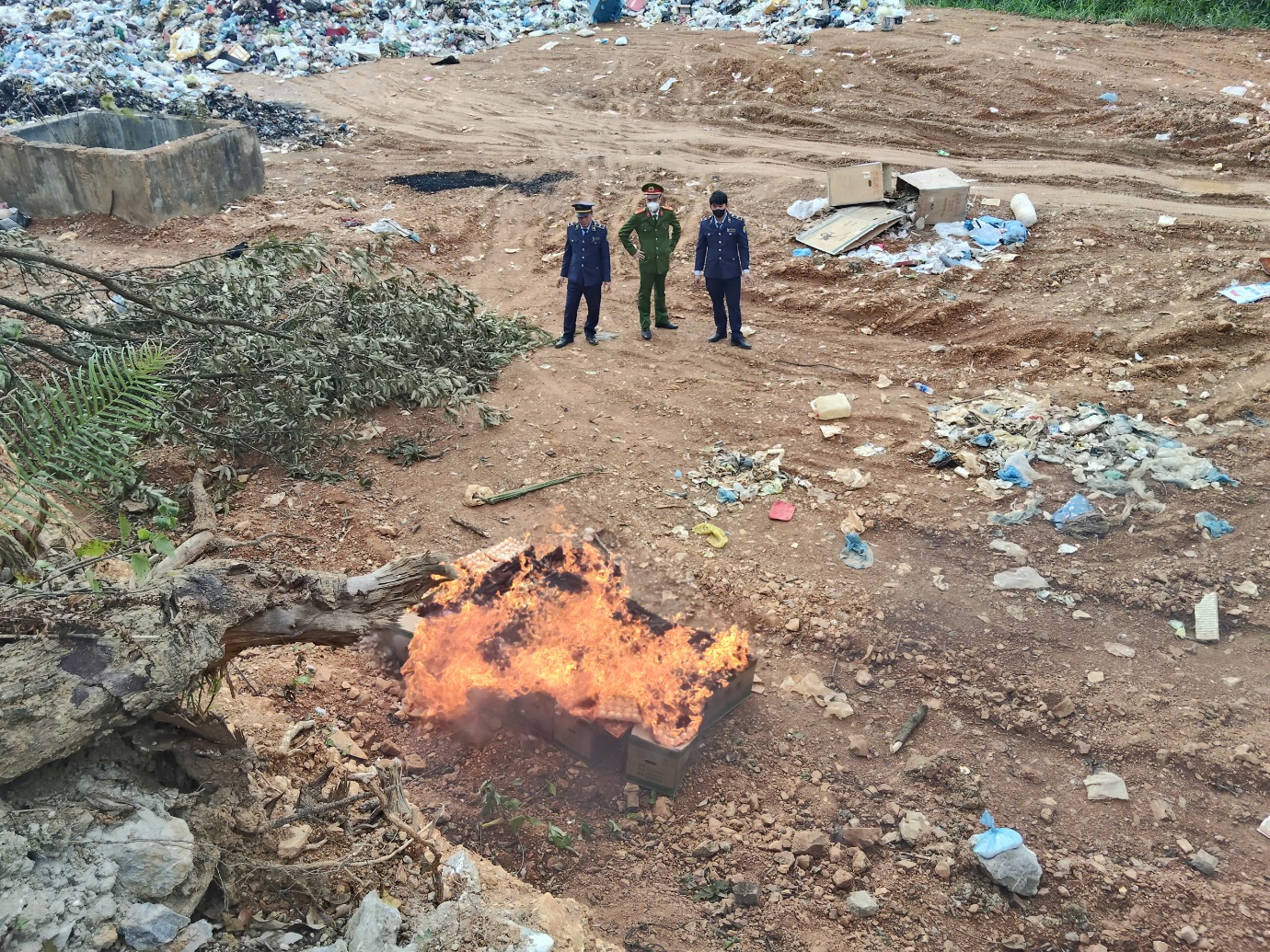 Đội QLTT số 4 phối hợp công an xã Bảo Lạc tiến hành giám sát việc tiêu hủy