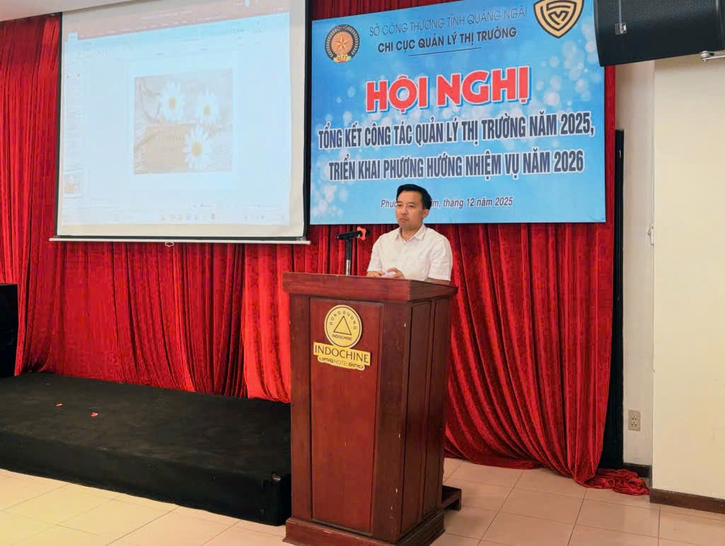 Ngày 30/12/2025, Chi cục Quản lý thị trường tỉnh Quảng Ngãi tổ chức Hội nghị tổng kết công tác năm 2025 và triển khai nhiệm vụ năm 2026. Hội nghị là dịp để tập thể Chi cục nhìn lại chặng đường một năm thực hiện nhiệm vụ, đánh giá những kết quả đạt được, chỉ rõ những tồn tại, hạn chế, đồng thời xác định phương hướng, giải pháp trọng tâm trong thời gian tới.